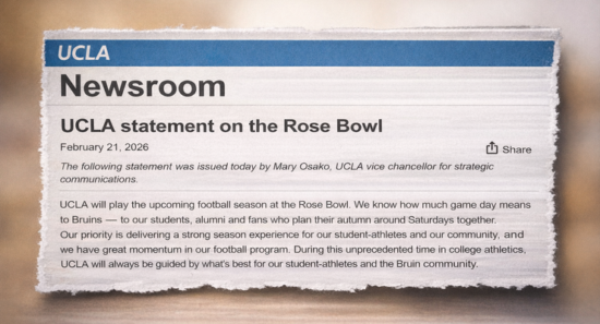 UCLA will play the 2026 football season at the Rose Bowl, the university announced Saturday, confirming that new head coach Bob Chesney will open his tenure at the Pasadena stadium the Bruins have called home since 1982. The announcement comes less than three ... More »