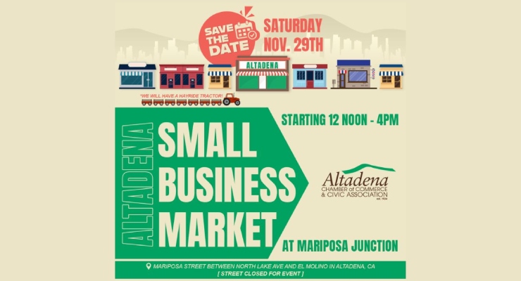 The Altadena Chamber of Commerce announced it will host the Altadena Small Business Market at Mariposa Junction on Saturday, Nov. 29, from noon to 4 p.m. The event is intended to support local businesses recovering from recent wildfires and economic challenges.