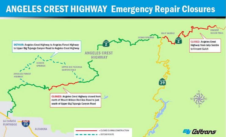 [UPDATED] A section of the Angeles Crest Highway will be closed on Tuesday in the Angeles National Forest for roadway repairs, Caltrans announced.