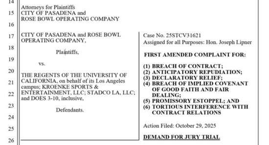 [Updated] City officials confirmed Friday that Kroenke Sports & Entertainment and SoFi Stadium have been added as defendants in Pasadena and the Rose Bowl Operating Company’s lawsuit against UCLA, escalating the legal fight over the university’s plan to move ... More »