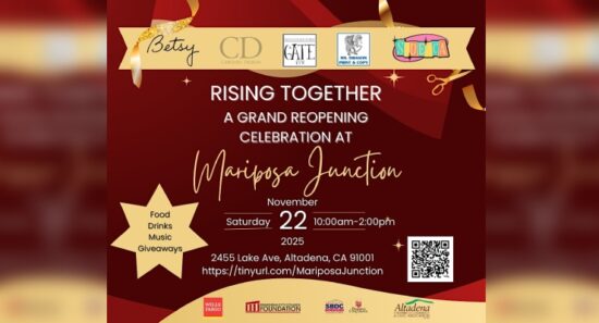 Five small businesses will celebrate their grand reopening on Saturday, November 22, marking one of Altadena’s first major community gatherings since the Eaton Fire. The “Rising Together” celebration at Mariposa Junction, at 849 E. Mariposa Street in Altadena,... More »