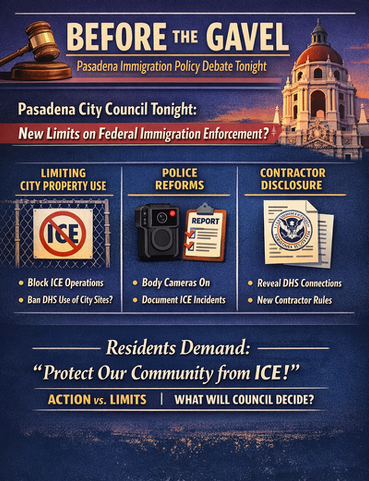 The City Council is set to review a staff report outlining proposed measures to mitigate the impacts of federal immigration enforcement on city resources, property and community safety. The item is listed for discussion, though council members may take action following deliberation.