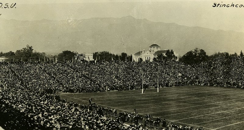 In the photograph above, you can see the nascent research university behind the crowd amassed for the 1921 game. (The California Golden Bears ended the Ohio State University Buckeyes’ winning streak.)