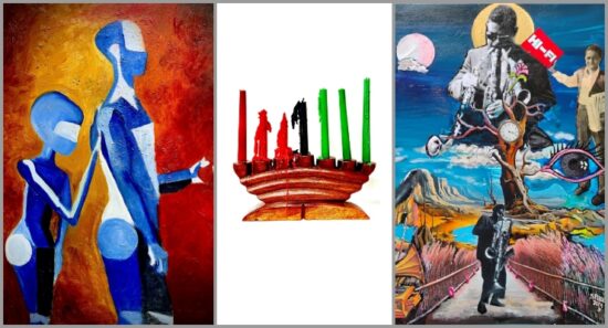 The candles on Jasimen Phillips’s assemblage are melted, the wax pooling in shapes that record time the way a family records it — by gathering, by staying. The piece, “7th Day of Kwanzaa,” anchors “Culture of Black Excellence in Art,” a free exhibition now on ... More »