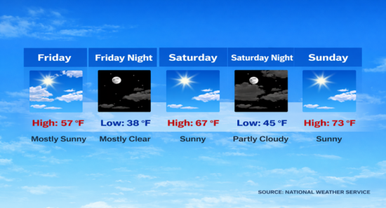 Pasadena residents will face another frosty night Friday before a warming trend lifts temperatures well above normal by Sunday, according to the National Weather Service. Forecasters said Friday’s high will reach near 57 degrees under mostly sunny skies, with ... More »