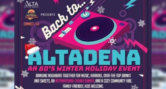 Local community groups are inviting Altadena and Pasadena residents to an “80s Winter Holiday Party” on Wednesday, Dec. 3, transforming a stretch of Woodbury Road into a retro-themed celebration. The event, titled “Back to Altadena,” will run from 6 p.m. to 10... More »