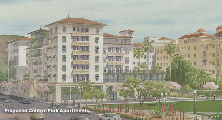 “The Central Park Apartments will bring 84 housing units to Pasadena, 20% of which will be affordable as the city wants. The housing is close to Old Pasadena, public transit and Central Park, making it an ideal location in Pasadena.”