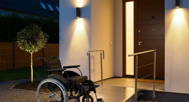 The guide also addresses sensory needs. Dual-pane windows and acoustic panels dampen sound. Muted paint colors reduce visual overstimulation. Doorbells include flashing light options for deaf residents.