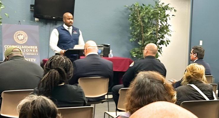 District 3 Pasadena City Councilmember Justin Jones of District 3 led a team of City officials at a community meeting on Thursday, Nov. 2, to address residents’ concerns at Kings Village Apartments near the Robinson Park Recreation Center and provide updates in the wake of a recent shooting that left one man dead and another injured.