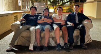 Undergraduate Donny Lu and other members of the Caltech Robotics Club had heard about a project in which engineering students at Stanford had affixed two electric skateboards to the bottom of a sofa, just to see if they could. The Techer team including students Myu Kim, Frank Gomez-Montalvo, and Luis Yael Serrano Laguna knew they could build a better, faster, more maneuverable piece of self-propelled furniture. And just a few weeks later — after a visit to a hardware store for lumber, the acquisition of some electric motors and wheels online, and twice-weekly meetings to make the machine work — their moveable beast rolled past Caltech’s Red Door Cafe.