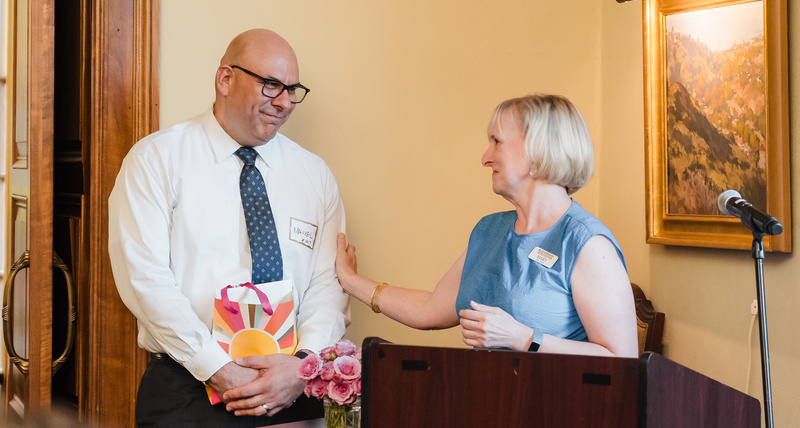 LP Board Vice President Mary Spellman thanks Manuel Carmona, Leadership Pasadena Board member and Interim Pasadena Public Health Director, for his service.