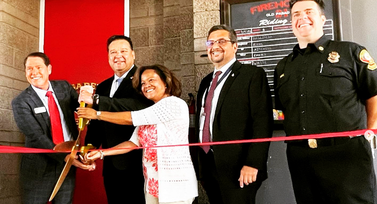 Councilmember Steve Madison, Mayor Victor Gordo, Vice Mayor Felicia Williams, City Manager Miguel Márquez and Deputy Fire Chief Timothy Sell join in the ribbon cutting. [Mayor Gordo’s Office]