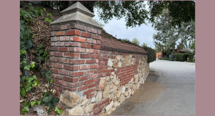 Planning Director Jennifer Paige recommends approval, finding the wall meets criteria for artistic significance. The retaining wall is composed of brick, concrete and Arroyo stones with a peaked brick cap.