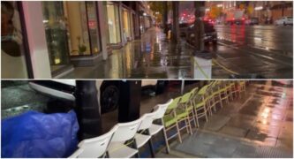 Pasadena Now’s Eddie Rivera said there were more covered chairs than spectators, a marked contrast to typical years when thousands line and party along the street beginning at noon on Dec. 31.