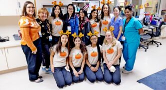 Dressed in festive attire, the Rose Court members visited children, families and staff throughout Huntington Health, offering smiles and treats during a special “trick-or-treat” walk.