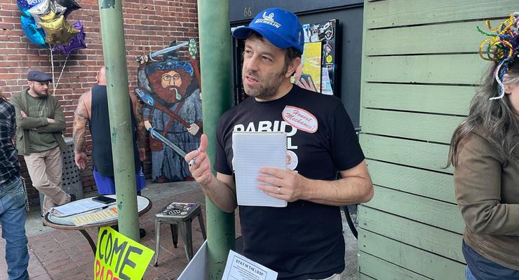 Mark, a genial presence with the unfazed demeanor of a former summer-camp counselor/music director guy (because he is one), first encountered the grant while poking around online after performing at ArtNight, the city’s sprawling semiannual arts crawl. A mini-grant came with that gig, and a real grant, he learned, required workshops, paperwork, and—small detail—an idea.