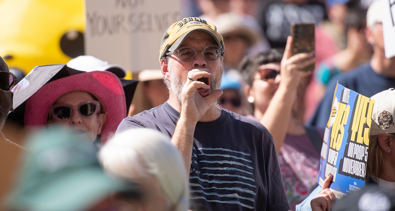 Pasadena Councilmember Rick Cole at the “No Kings” 2 demonstration in Pasadena on Saturday, October 18, 2025. [Paul Takizawa/Pasadena Now]