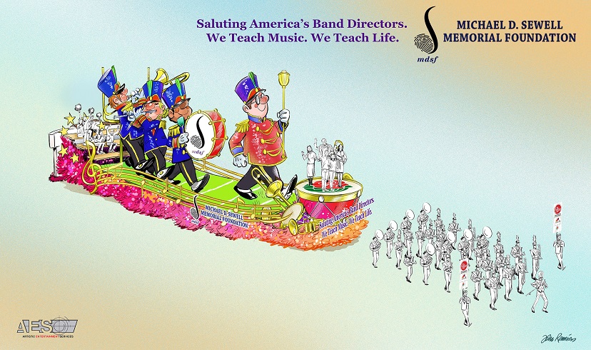The band will make their way down the historic parade route with The Michael D. Sewell Memorial Foundation float themed “Saluting America’s Band Directors: We Teach Music. We Teach Life.” The float will continue Rose Parade tradition with symbolic and spectacular storytelling in front of hundreds of thousands on Colorado Blvd. and millions of our worldwide audience on New Year’s Day.
