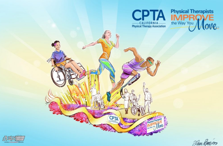 The California Physical Therapy Association (CPTA) float entry recognizes the 100th anniversary of its national organization, the American Physical Therapy Association (APTA), by celebrating the impact that physical therapists and physical therapist assistants have on the lives of persons of all ages and abilities. The float showcases the kinetic energy of three larger-than-life individuals thriving as they return to meaningful activities such as school, sports, or work after receiving physical therapy. From adapting to prosthetic limbs and spinal cord injuries to restoring mobility after knee surgery, “Physical Therapists Improve the Way You Move.” (Artistic Entertainment Services)