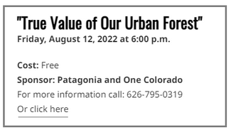 Vejar, Caltech’s own arborist and an organizer of the Caltech Tree Corps this year, will be emceeing an event on Friday, Aug. 12, that focuses on the “True Value of our Urban Forest” – especially Pasadena’s urban forest. The event will be held in person at the Patagonia store located at 47 N Fair Oaks Ave. in One Colorado.