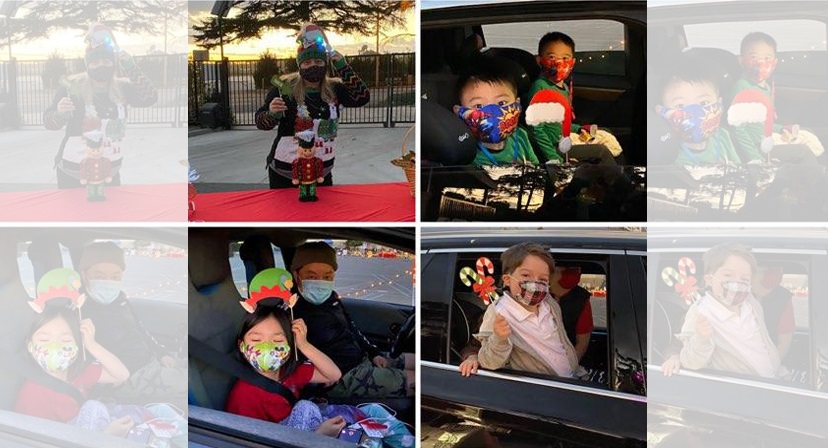 The Holiday drive-thru, along with all of the the twinkling lights, festive music, and fun Christmas decorations, included different stopping points that celebrated and exhibited different Winter Holidays that are celebrated around the world, including Hanukkah (the Jewish festival of Lights), Kwanzaa (the African American Winter celebration), Las Posadas (the Latinx celebration of Mary and Joseph’s journey), Pasko (Filipino Christmas), and Christmas. Families were given hot chocolate, Candy Canes, festive pencils, Hanukkah gelt, and cookie kits to take home. Students dropped off ornaments to trim the school’s tree. Middle School Students dropped off filled stockings to donate to Shepherd’s Pantry for distribution to children in need, and two eighth graders coordinated a healthy food drive to remember those less fortunate during the holidays.