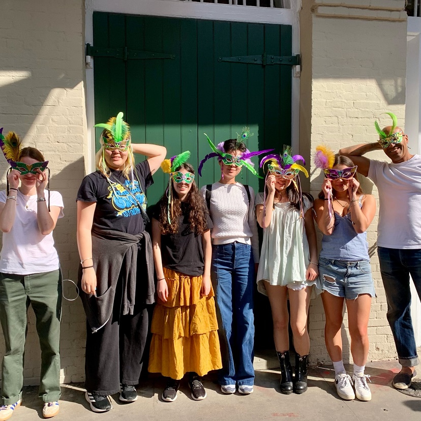 Beats & Beignets! In New Orleans this Discovery Week, Westridge School 11th grade students took part in a hands-on investigation of the intersections between music, history, cuisine, and regional culture. The group participated in a Mardi Gras mask-making workshop, toured the historic streets of NOLA, explored jazz at the New Orleans Jazz Museum and on an evening jazz cruise, and stepped into the studio to record, mix, and produce their own music!