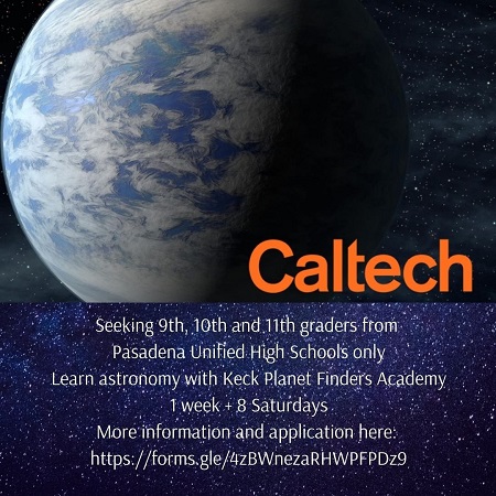 Caltech Planet Finder Academy to Provide 30 PUSD High School Students with a Deep Dive into the Field of Astronomy