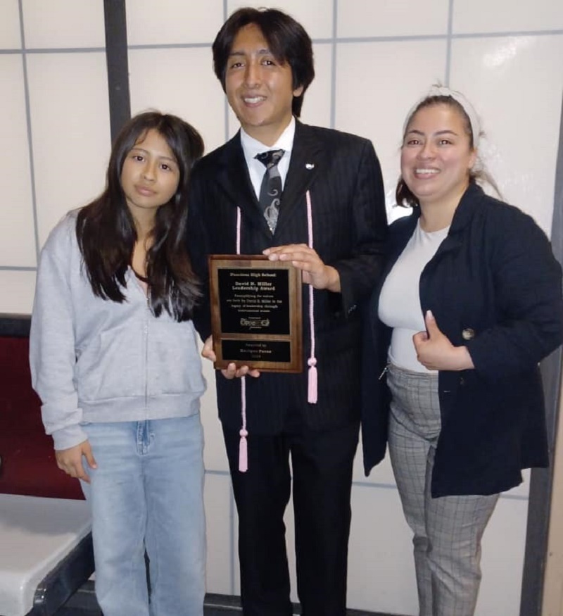 The recipient of the inaugural award is Enrique Perez. Enrique’s Mom and sister were at the event to celebrate with him. The music department at PHS delivered the name to The OBOE Foundation and we were excited with Enrique’s contribution to the music program and are pleased to present this scholarship to Enrique. Mr. Miller was the honored guest to present the award to Enrique.