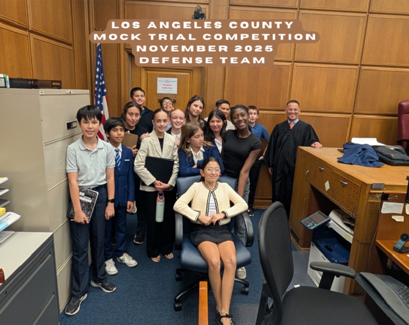 Competing alongside schools from across the San Gabriel Valley, SMMS students demonstrated impressive skill and professionalism—first serving as the Prosecution Team in Round 1, then switching roles to compete as the Defense Team in Round 2. Team members also stepped into essential courtroom roles including Bailiff, Witnesses, Journalists, and Courtroom Artists, contributing to a dynamic and well-rounded showing.