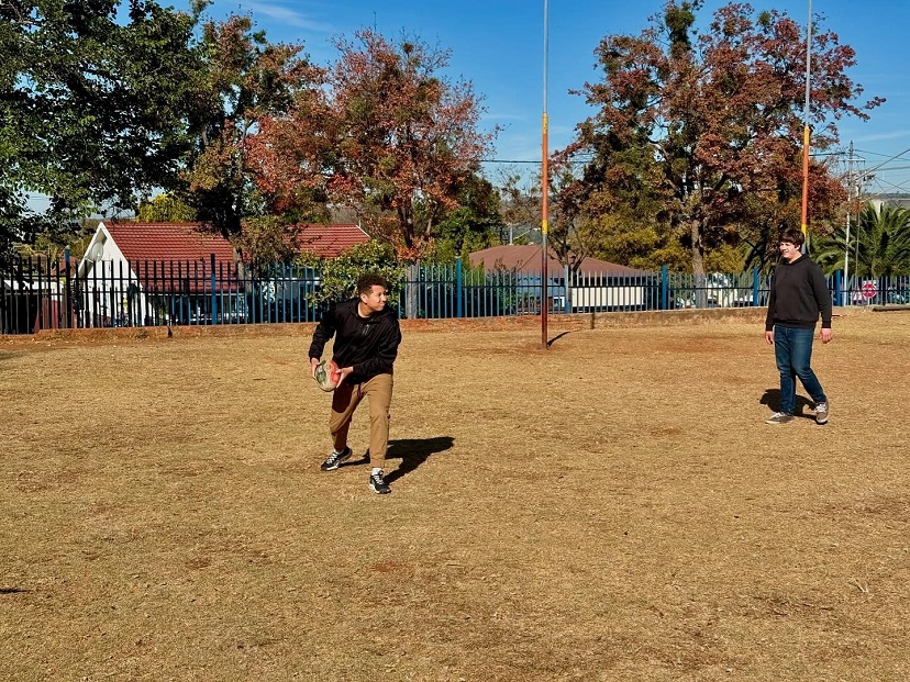 After two long flights and an extended layover in London, the St. Francis High School Mission Team has safely arrived in Pretoria, South Africa! The highlight of their first day in the country was visiting an after-school rugby club program. Here, they had the opportunity to learn the rules and techniques of the game and scrimmage with the local kids. Please keep these Golden Knights in your prayers as they continue their journey of service and cultural immersion in the coming weeks.