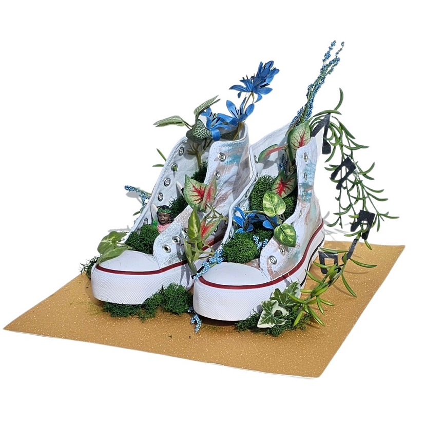 And in her words: “These shoes celebrate four Black and queer women. I have included Marsha P. Johnson, Barabara Jordan, Yasmin Benoit and Gladys Bentley. The art style is inspired by Aaron Douglass, a prominent artist during the Harlem Renaissance. It is important to me to spotlight lesser known people for Black history month.”